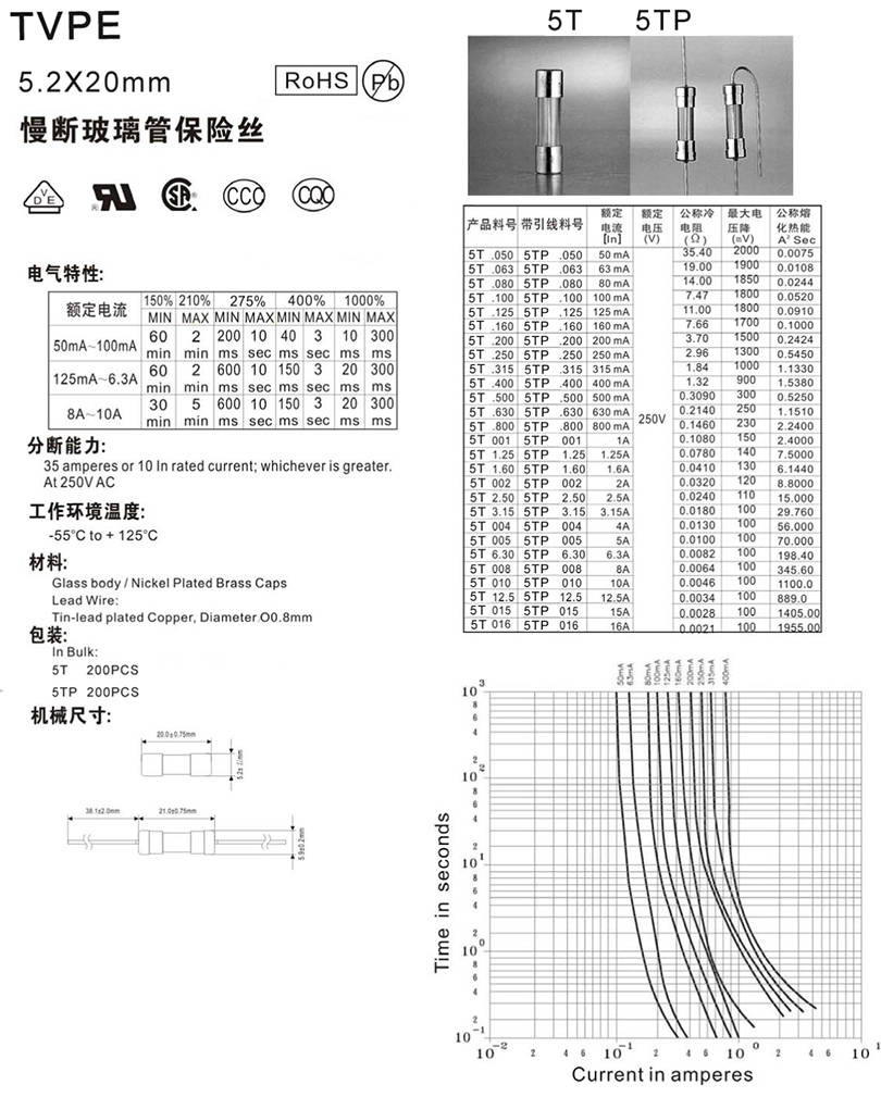 5.2X20mm玻璃慢斷保險(xiǎn)絲