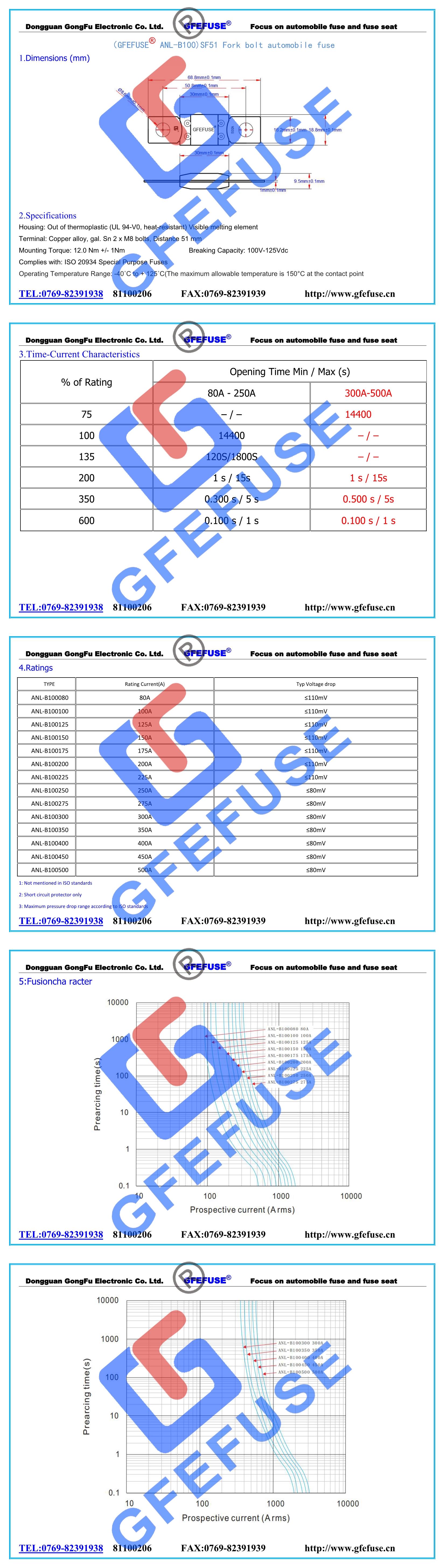 ANL-B100SF51 100V-125V叉栓汽車保險絲(中號)