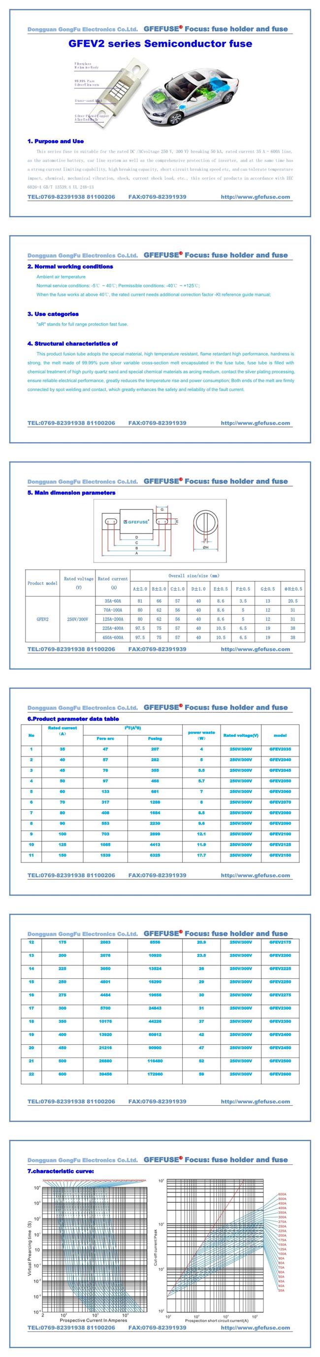 本系列電動(dòng)汽車直流熔斷器使用于額定電壓DC/AC 250V~300V,額定電流35~600A,熔斷器容量為20kA~50kA,適用于電動(dòng)汽車電池,電池增加容量,直流電源,產(chǎn)品符合 GB/T31465.1-2015和GB/T31465.6-2017標(biāo)準(zhǔn)。