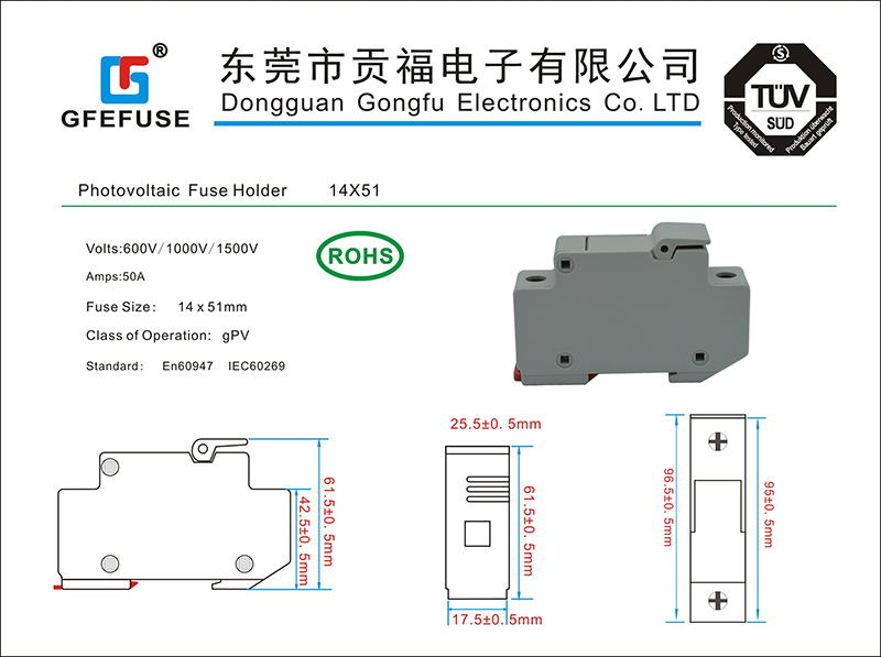 14X51光伏熔斷器座(50A1500V)
