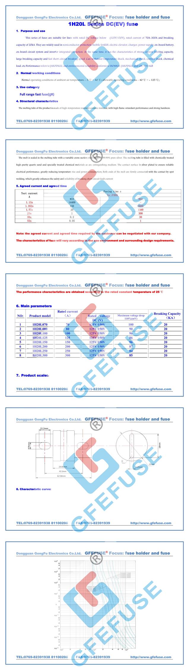 1H20L快速直流熔斷器(70A-300A)(150V125V)